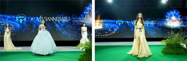 隨著現(xiàn)場(chǎng)的燈光漸暗,一場(chǎng)以“綠色纖維”為原料的成衣走秀拉開帷幕。本次大秀主要呈現(xiàn)了禮服、運(yùn)動(dòng)裝、婚紗三大品類的服裝,參與的高定和品牌有:VIVIANNEJIALIU、PJ、芮邦、馬克華菲、馬克•蝶麗奧娜。模特身著華美絢爛的色彩禮服、時(shí)尚輕便的運(yùn)動(dòng)裝以及飄逸靈動(dòng)的紗裙游走在T臺(tái)上,演繹著“綠色纖維”的時(shí)尚魅力,直觀生動(dòng)的展示了“綠色纖維”多場(chǎng)景應(yīng)用的適配性。