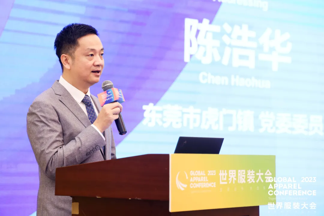 東莞市虎門鎮黨委委員陳浩華在致辭時表示,經過多年發展,虎門服裝服飾業形成了規模龐大的產業集群、配套完善的產業鏈條、成熟發達的市場體系,服裝服飾年產值430億元,年銷售額超830億元,生產及配套的企業(機構)近4000家,從業人員超過20萬人,虎門更是全國12個世界級紡織服裝產業集群先行區中唯一突出“服裝產業”的先行區。他指出,此次會議匯聚國內外專家、紡織服裝產業鏈優秀企業代表,聚焦紡織服裝品質提升與功能性拓展,圍繞面料流行趨勢等內容展開交流和探討,必將為虎門服裝的時尚創新帶來新的思考和開拓新的路徑。