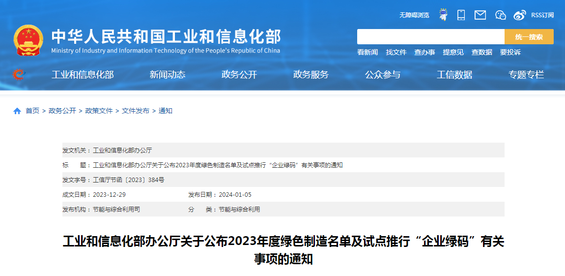 近日,工業(yè)和信息化部公布了2023年度綠色制造名單。