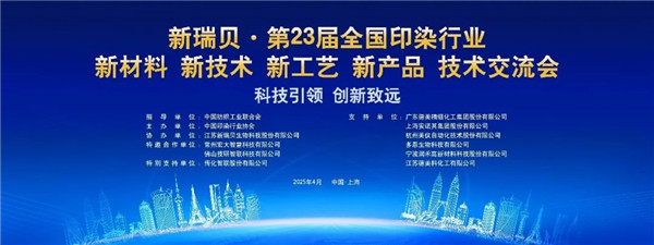 4月15日,由中國印染行業協會主辦、江蘇新瑞貝生物科技股份有限公司協辦的“新瑞貝·第23屆全國印染行業新材料 新技術 新工藝 新產品技術交流會” 在上海隆重召開。