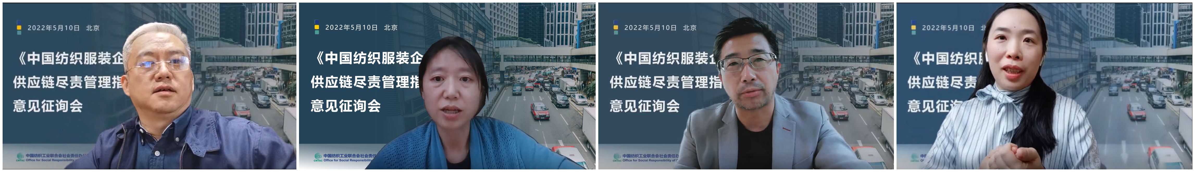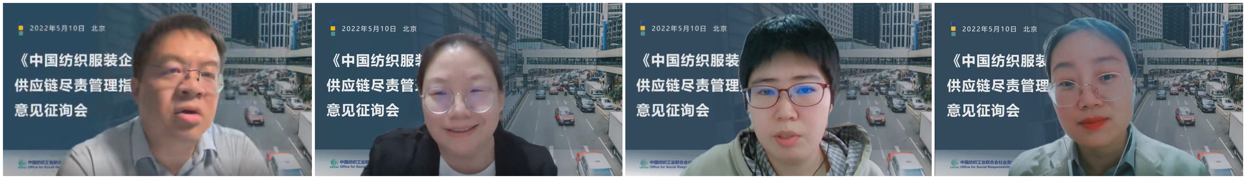 2022年5月10日下午,由中國紡織工業聯合會社會責任辦公室主辦的《中國紡織服裝企業社會與環境盡責管理指南(征求意見稿)》(暫定名,下稱“《盡責管理指南》”或“指南”)意見征詢會在線上成功舉辦。來自南開大學、北京工商大學、聯合國開發計劃署(UNDP)、聯合國兒童基金會(UNICEF)、經濟合作與發展組織(OECD)、德國國際合作機構(GIZ)等十五家機構的二十余位專家參加了本次會議,就盡責管理指南的改進與實施進行了全面、深入的討論。