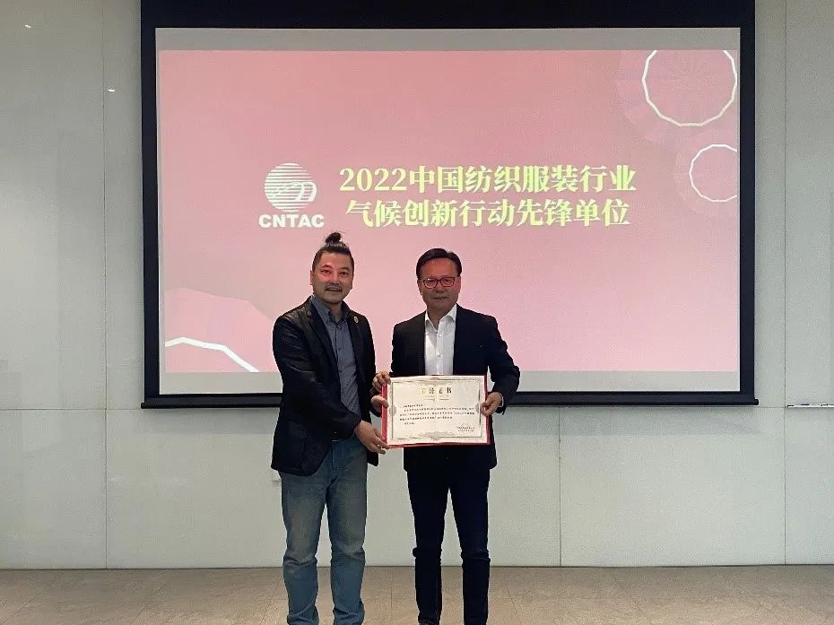 九牧王是全球銷量領(lǐng)先的男褲專家,專注男褲領(lǐng)域33年,在泉州市經(jīng)濟技術(shù)開發(fā)區(qū)清濛園區(qū)與晉江兩地均設(shè)有生產(chǎn)基地,其采用業(yè)務(wù)縱向一體化的模式,是集研發(fā)設(shè)計、生產(chǎn)、銷售為一體的時尚產(chǎn)業(yè)公司。作為國內(nèi)男褲行業(yè)龍頭,九牧王一直是中國紡織工業(yè)聯(lián)合會社會責任辦公室推動行業(yè)可持續(xù)工作的重點合作伙伴。中紡聯(lián)社責辦于2021年6月1日正式啟動了“中國時尚品牌氣候創(chuàng)新碳中和加速計劃”(簡稱“30·60碳中和加速計劃”),優(yōu)先支持30家重點品牌企業(yè)和60家重點制造企業(yè)開展氣候創(chuàng)新行動。對此,九牧王于2022年3月加入“30·60碳中和加速計劃”,全面梳理企業(yè)碳排放基線情況,制定九牧王雙碳戰(zhàn)略規(guī)劃。在本次氣候訓練營中,中紡聯(lián)社責辦副主任兼可持續(xù)發(fā)展合作部主任胡柯華為九牧王董事長林聰穎先生頒發(fā)“2022中國紡織服裝行業(yè)氣候創(chuàng)新行動先鋒單位”證書。