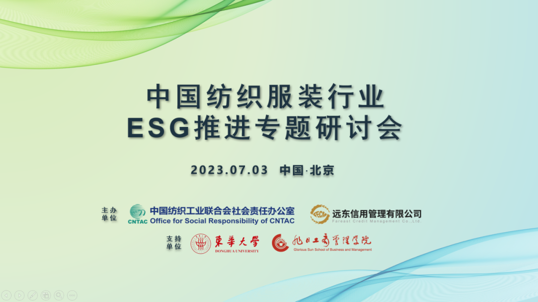 7月3日,中國(guó)紡織工業(yè)聯(lián)合會(huì)社會(huì)責(zé)任辦公室聯(lián)合遠(yuǎn)東信用管理有限公司共同舉辦的中國(guó)紡織服裝行業(yè)ESG推進(jìn)專題討論會(huì)在中國(guó)紡織信息中心舉行。東華大學(xué)旭日工商管理學(xué)院作為支持單位參與本次會(huì)議。