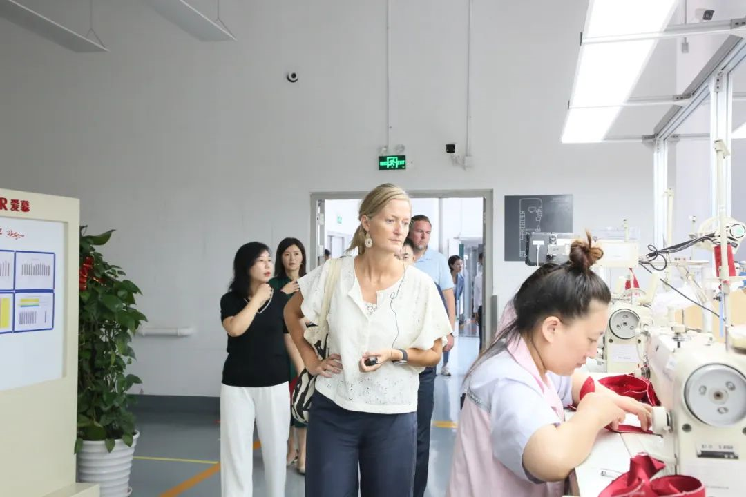 愛慕時尚工廠總經理關春紅女士帶領到訪人員逐一參觀了愛慕時尚工廠內的愛慕書屋、愛慕博物館、愛慕工坊、母嬰室、全自動裁剪車間、立式生產車間等生產和文化設施,并從產品制造、技術研發、物流配送、企業文化發展和傳統文化的應用與傳承等維度進行了詳細介紹,使聯合國兒基會參訪人員對中國紡織服裝行業和蘇繡等傳統文化有了更加全面和深入的了解。