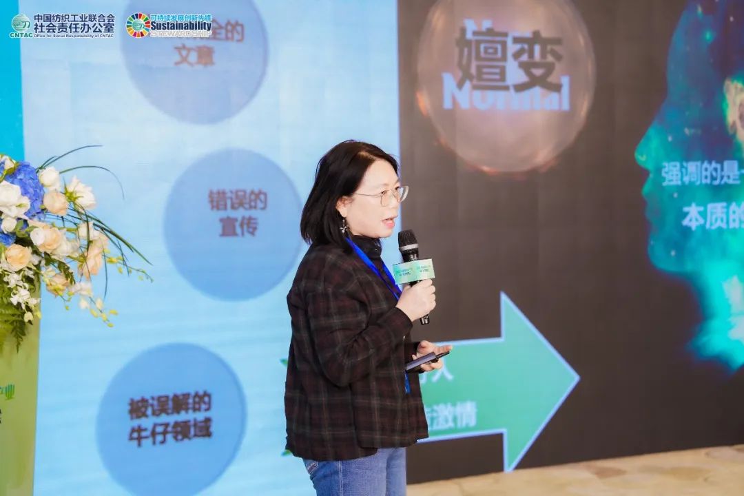 前進(jìn)牛仔CEO王宗文作為制造企業(yè)代表分享了她的經(jīng)驗(yàn)。她表示,牛仔行業(yè)經(jīng)過(guò)多年技術(shù)發(fā)展,已擺脫高耗水高污染的標(biāo)簽,且完全有潛力成為最環(huán)保的面料之一,這主要基于其原料生物基、短流程制造、化學(xué)品少、常溫染色、洗水技術(shù)變革、洗滌微纖少等特點(diǎn)。當(dāng)談到企業(yè)ESG管理經(jīng)驗(yàn)時(shí),她提到前進(jìn)牛仔近年來(lái)主要在可持續(xù)采購(gòu)、設(shè)備開發(fā)、產(chǎn)品研發(fā)、能源管理、廢物治理、智能化改造幾個(gè)方面發(fā)力,如持續(xù)提升可持續(xù)纖維使用比例、使用環(huán)保染色設(shè)備、實(shí)行54項(xiàng)技改活動(dòng)、實(shí)現(xiàn)年循環(huán)用水46萬(wàn)噸,數(shù)字孿生技術(shù)實(shí)現(xiàn)車間水電氣數(shù)據(jù)實(shí)時(shí)跟蹤等。