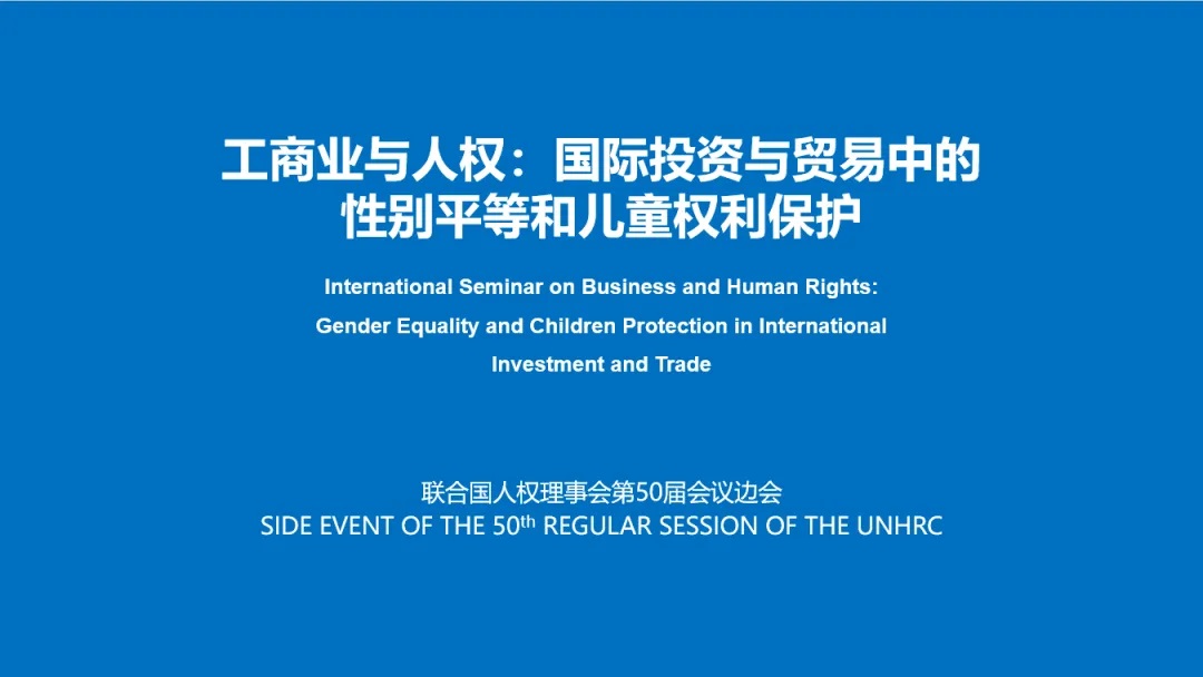 在聯(lián)合國人權理事會第50屆會議期間,以“工商業(yè)與人權:國際投資與貿易中的性別平等和兒童權利保護”為主題的云上邊會7月6日舉行。